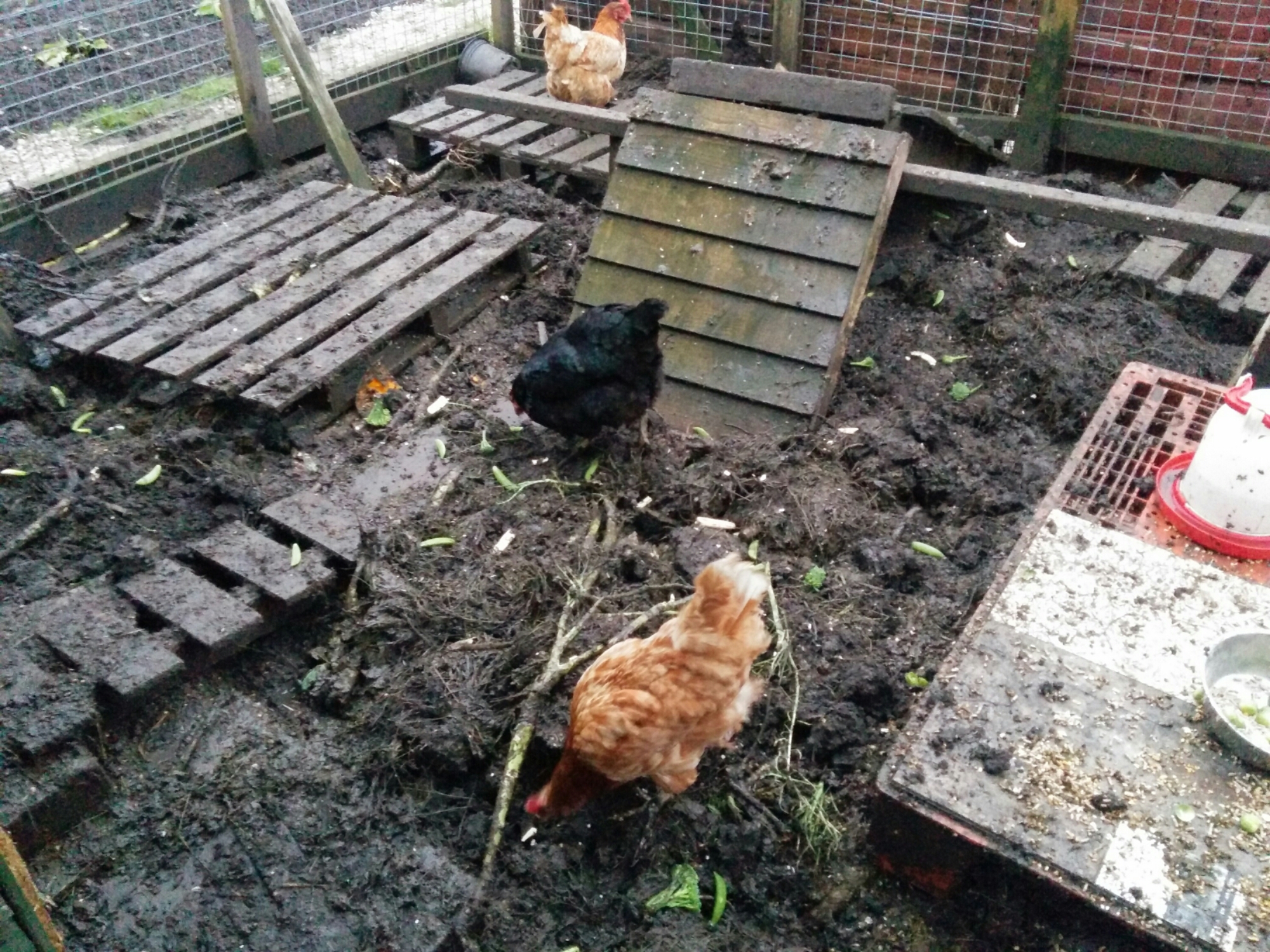 The mud levels in the coop are rising so we have added extra wood and crates to get them off the mud. Yesterday we had a disaster with the coop padlock. Geoff and Cliff couldn’t find the key on Friday to sort out the chickens. When I went down to check them, torch in hand, I spent about 15 minutes looking for it. Nothing. So Cliff had to cut the padlock on Saturday so it looks like we need a new one. Personally, I think one of our girls has eaten it….