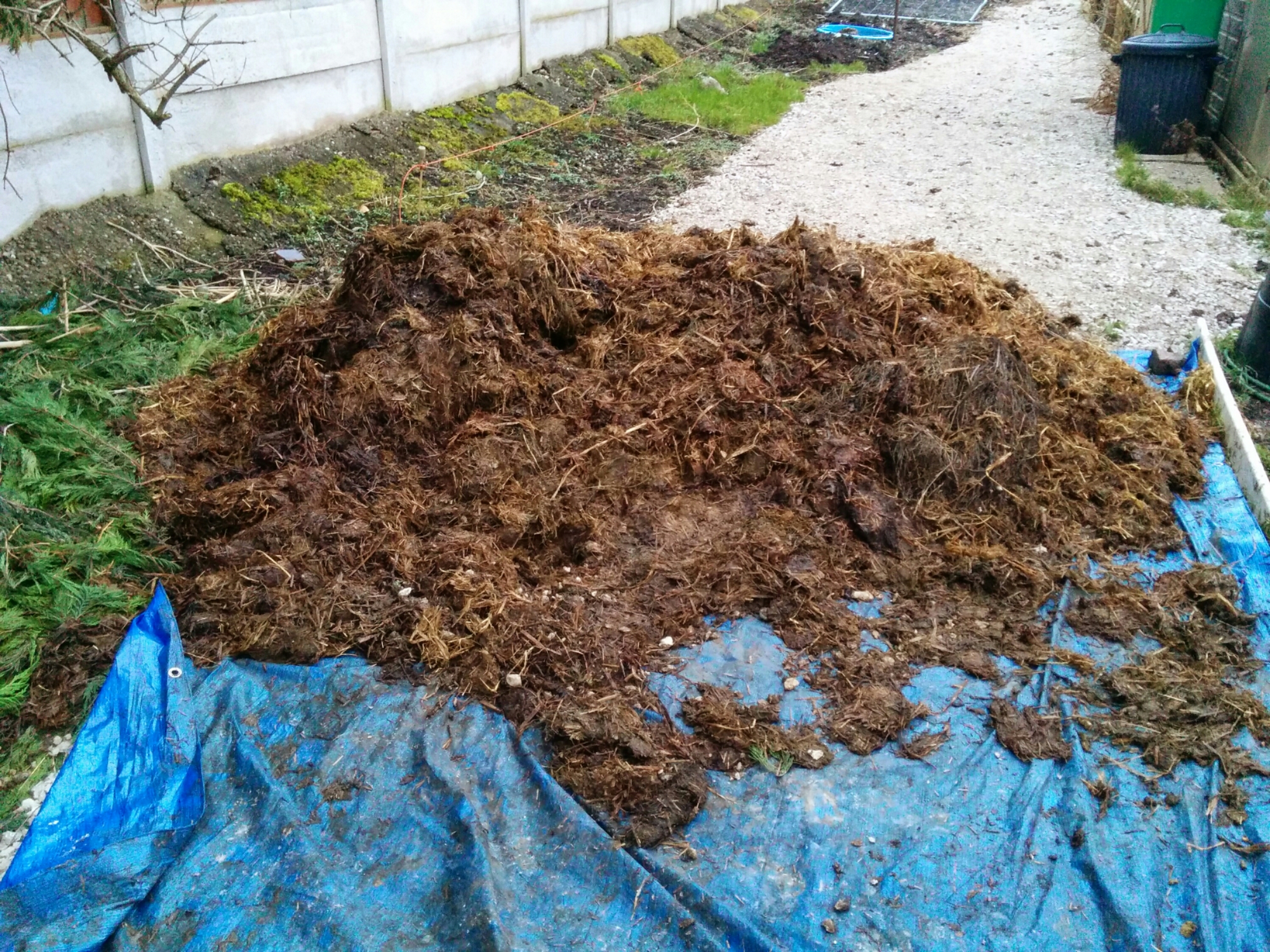 Cliff did sterling work, clearing three black bins full of glass from the soil underneath the shed left by the previous tenant. Someone really needs to have a word with him! Cliff also helped move multiple wheelbarrows of manure to the storage box on the new plot. Between both of us we must have done a good 20 barrows, making a decent indent into the seemingly unending pile on the back road. The only problem is that the storage box is almost full and there is still a considerable amount of manure still to fit in….