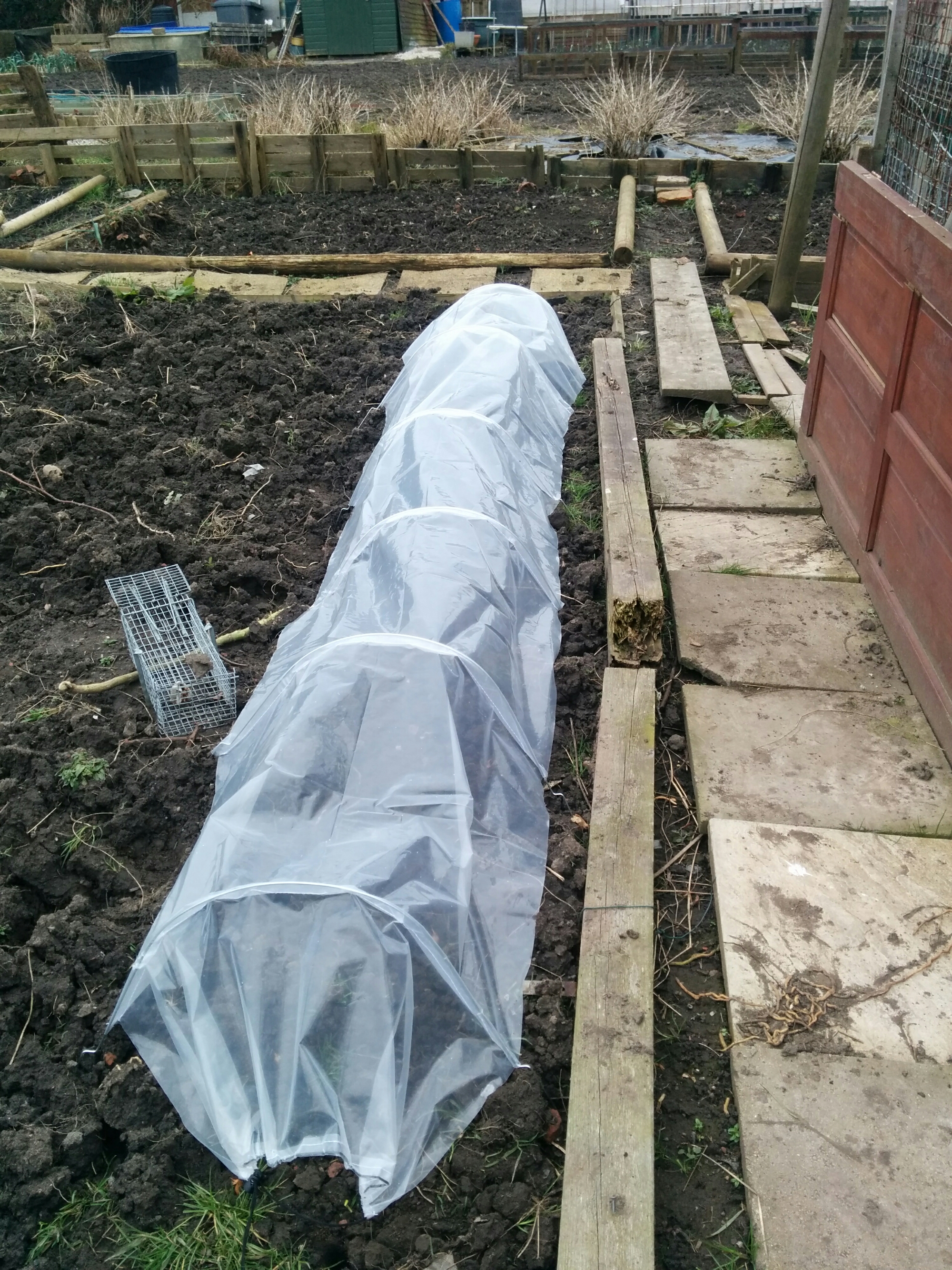 After lunch I planted 60 tulip bulbs that I bought in Holland a couple of weeks ago. They had started to sprout so they definitely needed to be planted asap! I planted them as a border in the smallest bed in the new plot, along the edge of the old plot and behind the daffodils in front of the shed. Other good news is that the daffodils and crocuses are coming up so the allotment should be full of flowers soon!