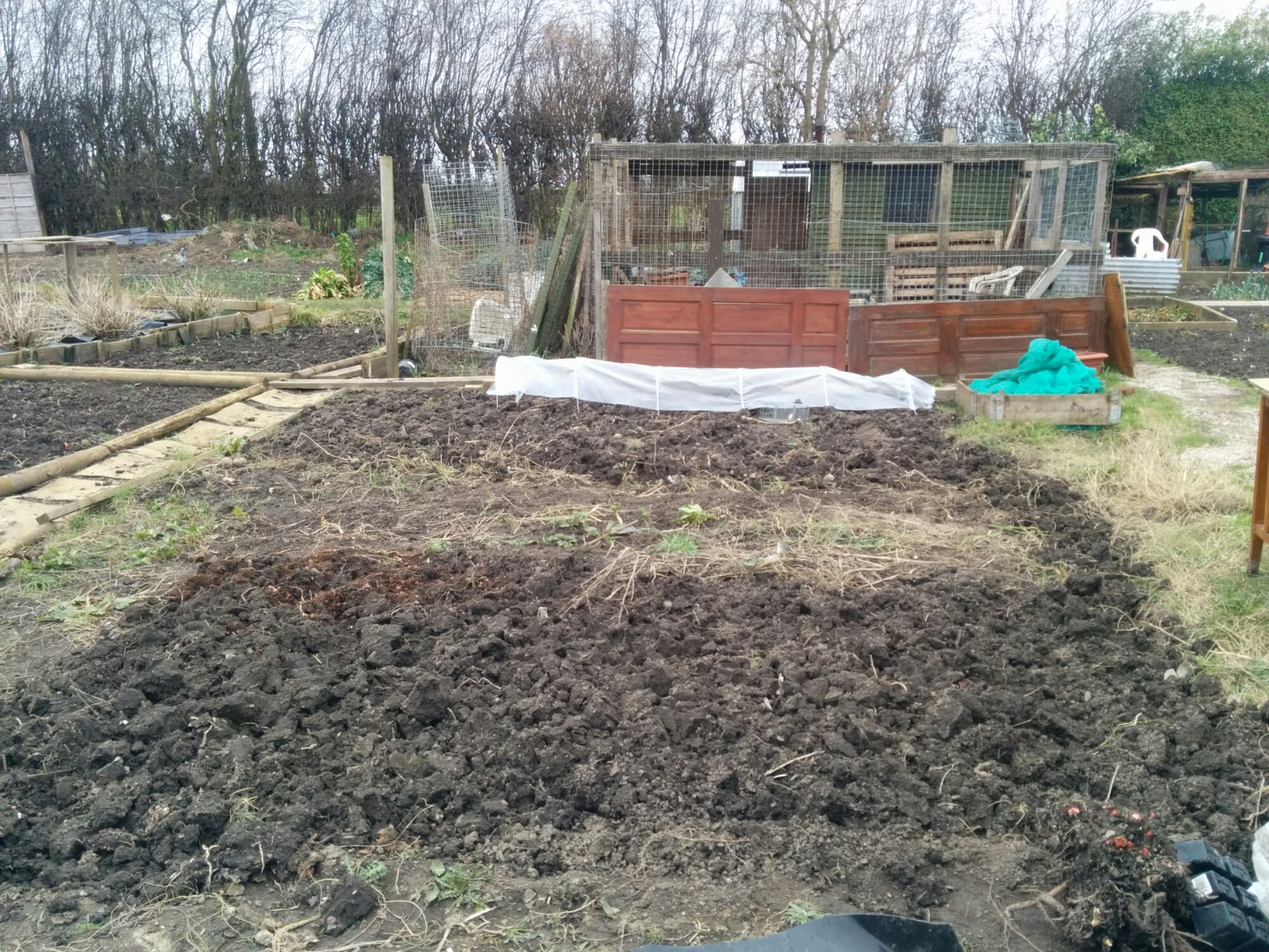 I arrived in glorious sunshine, fed the chickens (my they were grumpy!) and quail. Gathered one egg, but considering how early it was, it wasn’t too bad. I left the coop with the chickens happily munching on pellets and corn, armed with my fork ready for digging.