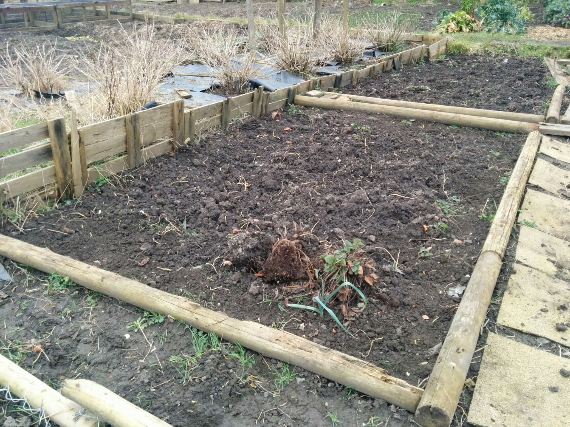 I dug a section of the new plot, focusing on marking out the biggest bed. I did a strip where the greenhouse base was (base is now forming the support for a shed for Keith the new plot holder). Arms aching I decided to take a break and take advantage of the arrival of home made soup courtesy of Steve. It was delicious!