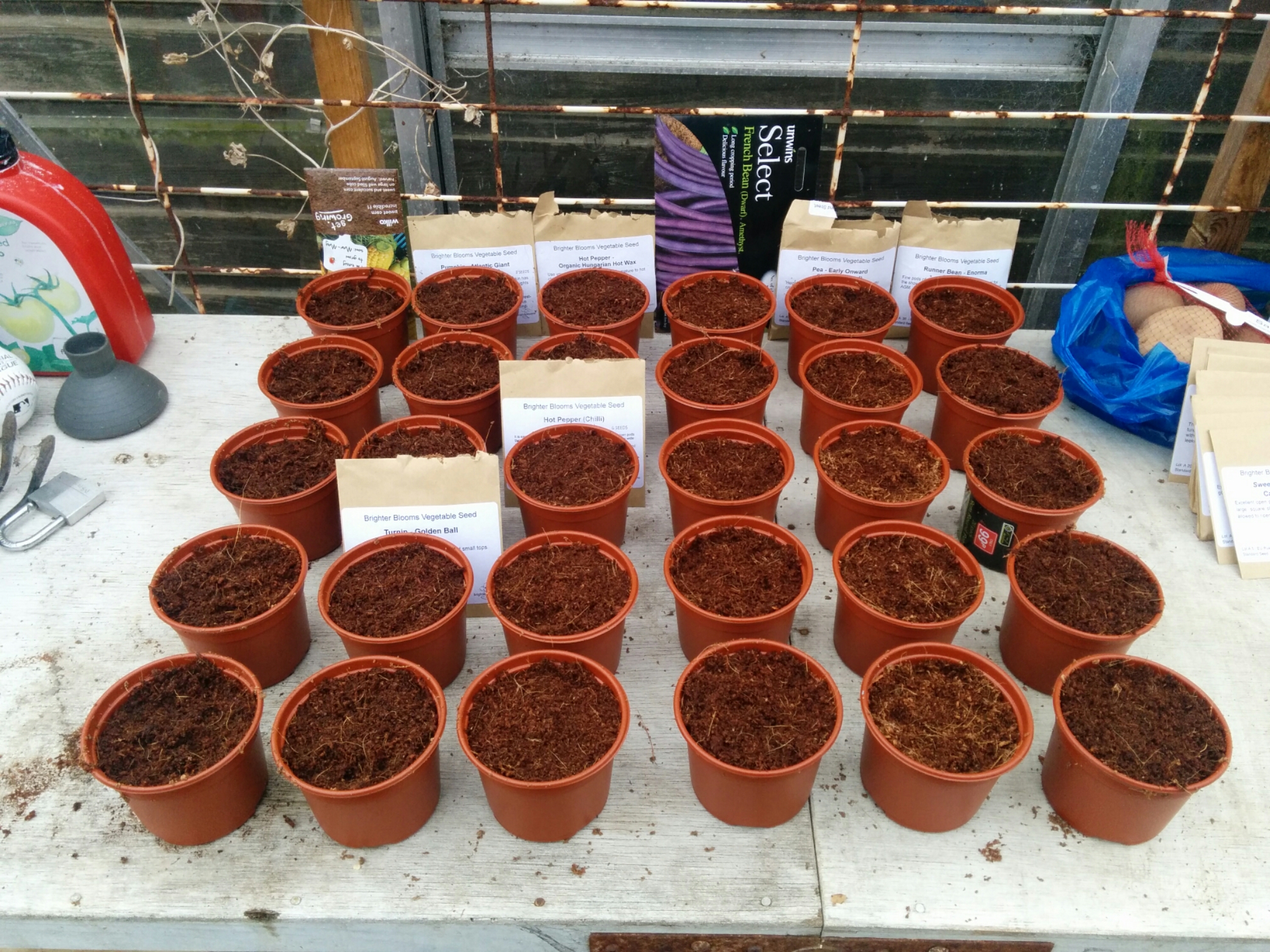 Trial of coconut compact compost with seeds (cheap from Home Bargains!) is an experiment to see whether the seeds grow better (or worse) in this soil as opposed to the compost I used last year.