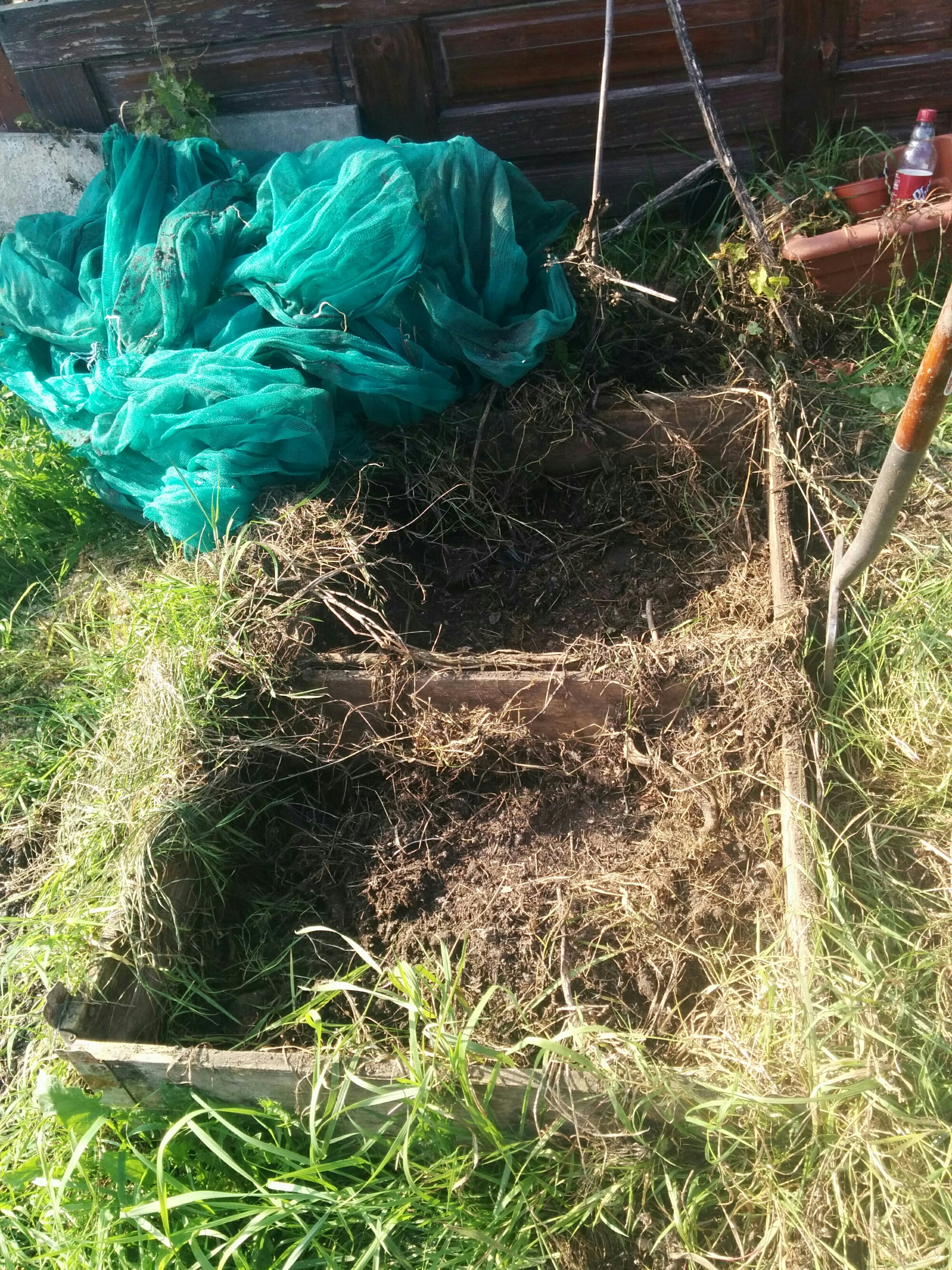 I set my husband on clearing the temporary compost pile by the coop into the main compost bin whilst I cleared the other temporary compost pile next to the raspberry bed. Whilst he was clearing the compost from one side of the allotment to the other, he discovered a dead rat entombed in the compost. After a short debate, we decided it must have died recently and we disposed of it. One down, several more to go I suspect.