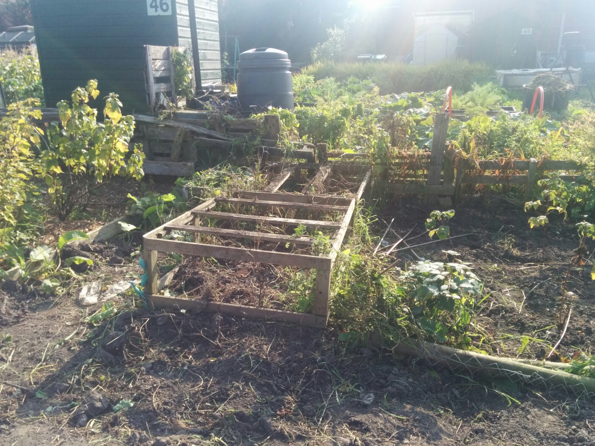 We had just finished the chicken coop clean when Dave the Plod swung by with the results of the inspection on Friday. It turns out the top plot was fine but there were a few issues with the bottom plot namely the pile of compost near the coop, the pile of wood extracted from the coop and the weeds on the half of the plot I haven’t had time or energy to clear yet. I wasn’t particularly happy about it as I am not sure they have considered how bad the plot was when we took it over and the fact that I am seven months pregnant. Ho hum.