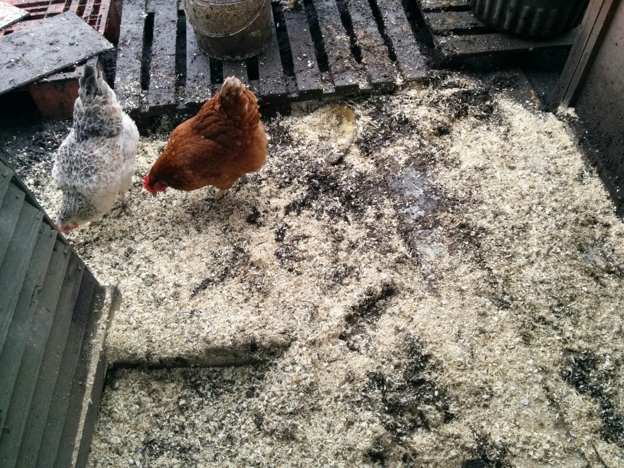 By some miracle, I managed to clear out the quail coop before putting in new bedding. In view of the colder weather, I put in an extra box full of sawdust shavings to keep them warm. The colder weather has driven them mainly into the inside portion of the coop as the outside is exposed to the rain. The old bedding has an additional bonus in helping absorb some of the excess wetness from the coop.