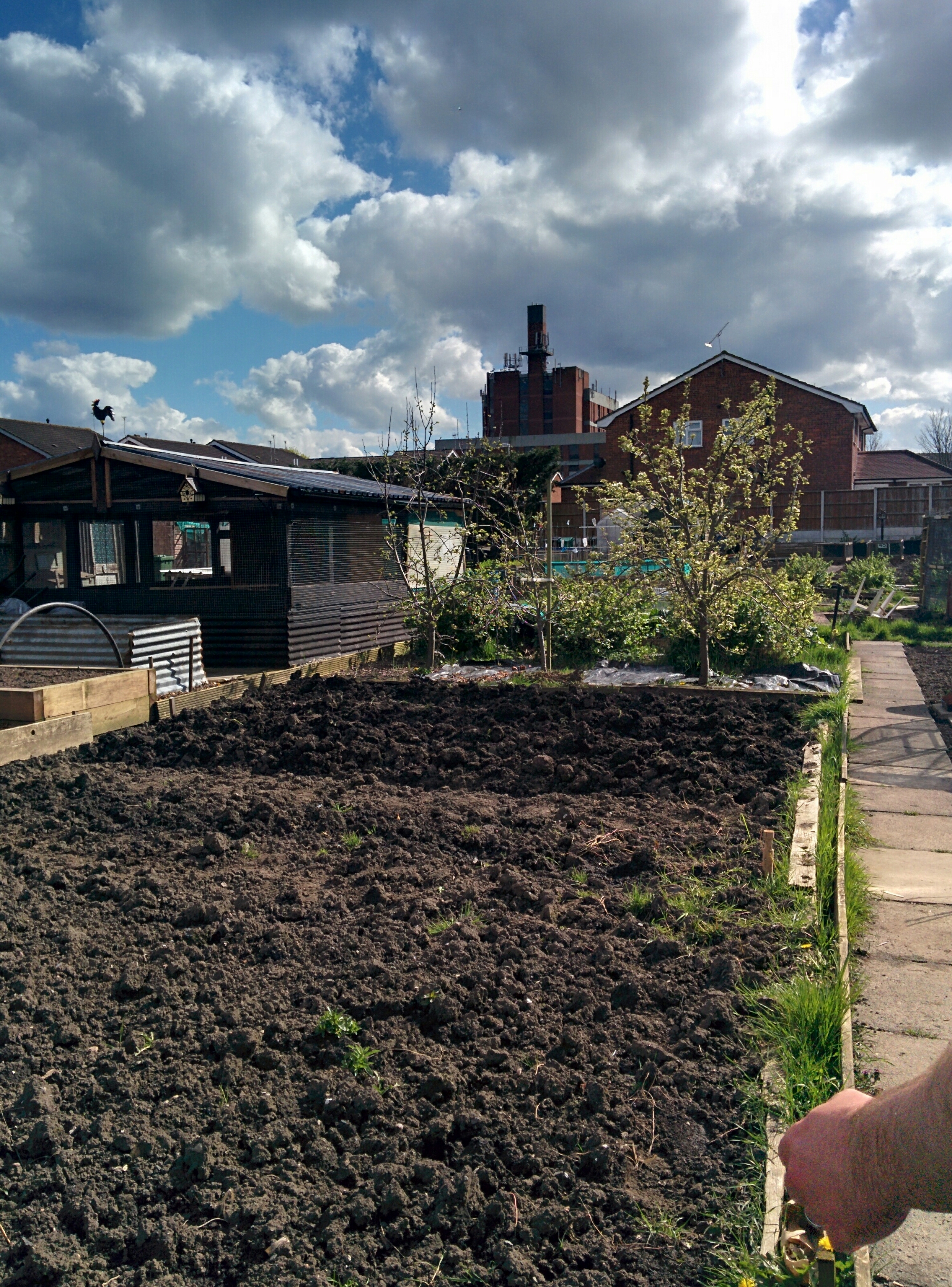 After surviving church with a newborn (a new nail-biting sport where you spend every other second checking that the baby is still asleep and praying desperately she won’t scream in the middle of the service!) – we decided to celebrate her sleeping through the entire thing by plodding down to the allotment in the glorious April sunshine to dig in our potato crop.