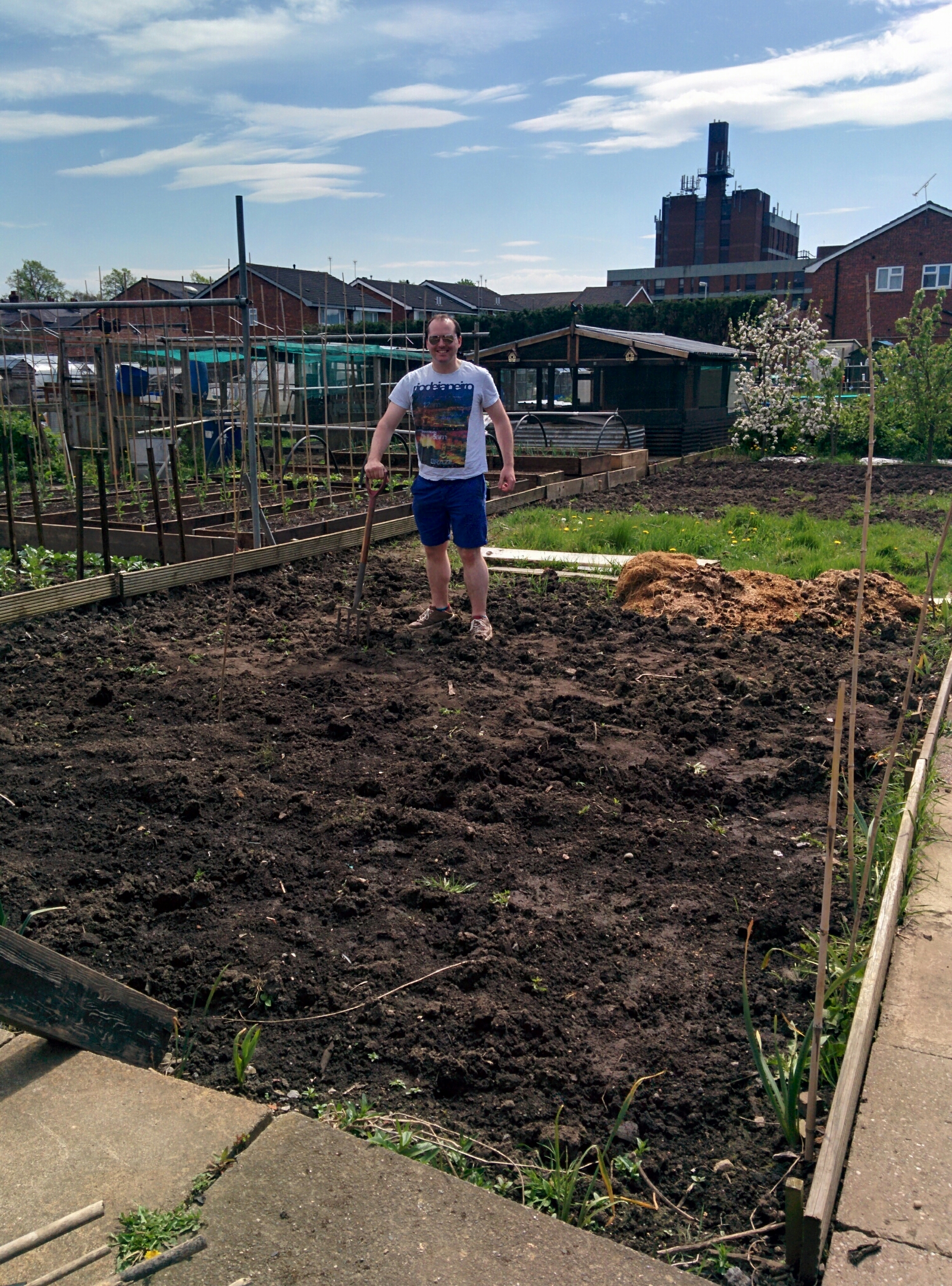 While my husband dug the weeds out from a section of the top plot – thankfully Geoff has helped us by planting a few rows of potatoes making it look more cultivated than if it was just us.