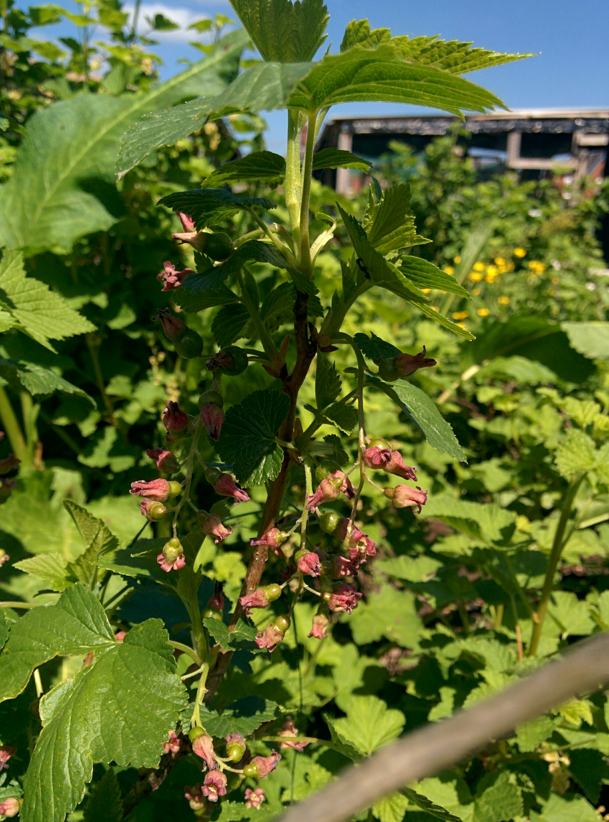 Taking turns with the hot, grumpy baby, we managed to clear most of the weeds around the currant bushes and the husband tackled the mass of doc plants in front of the fruit bushes.