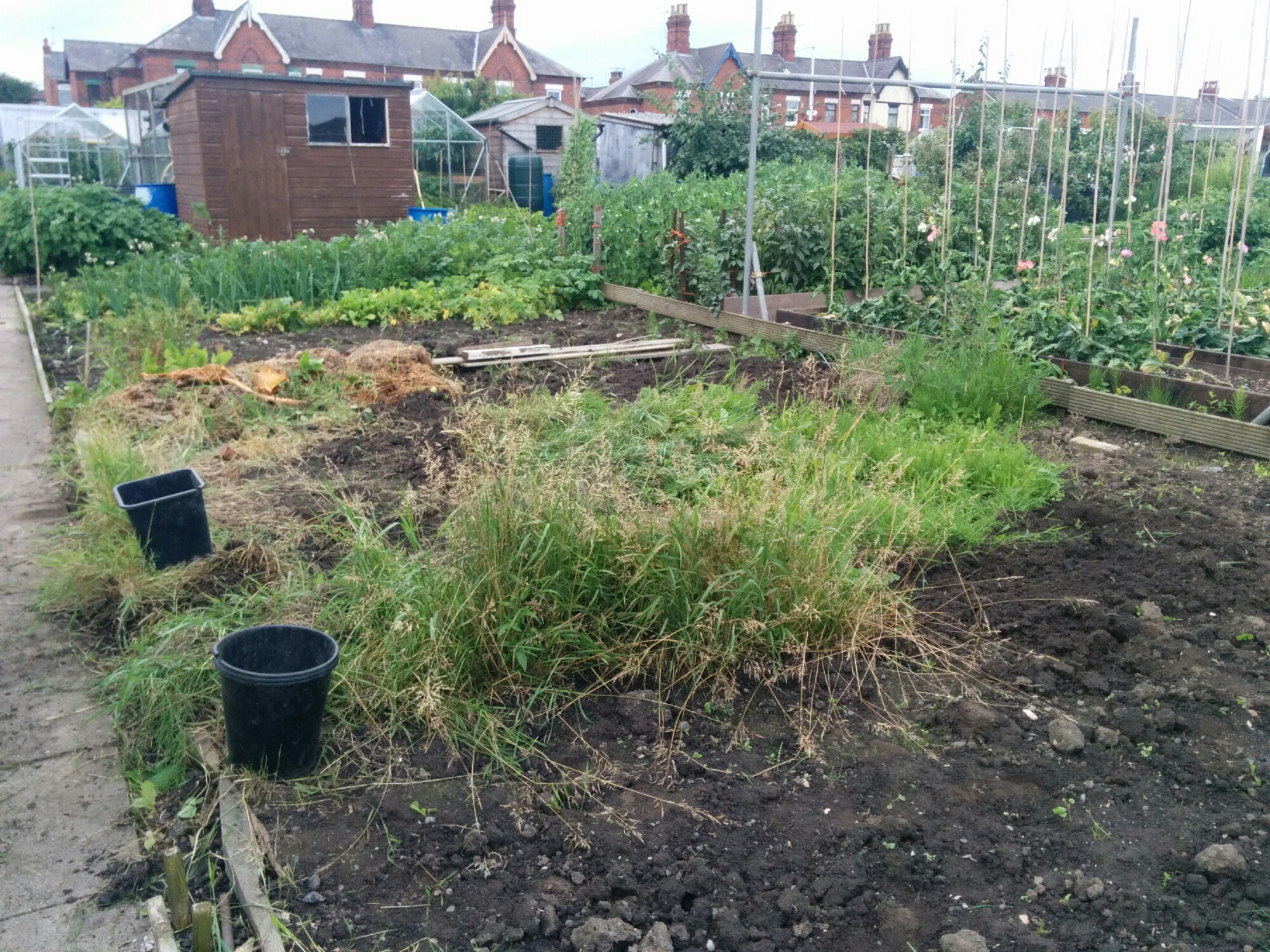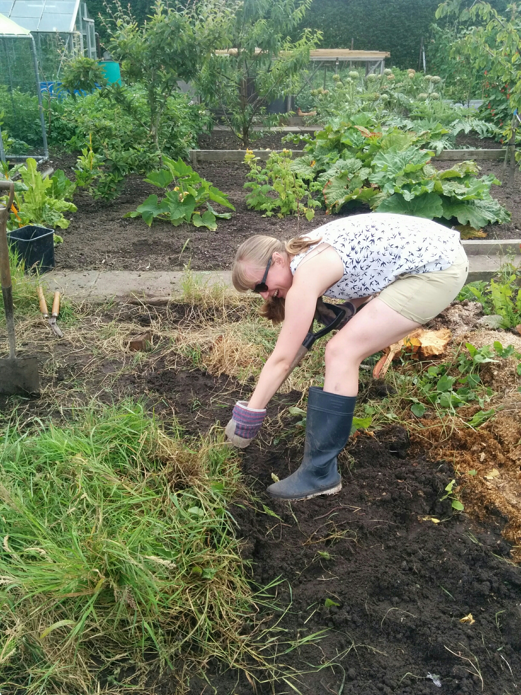 This evening, I again snuck out of the house and of baby bedtime to do some serious allotment work. As ever, my trusty side-kick Fiona joined me after work.
