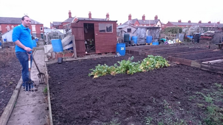 Today we finally went down to the allotment and started to sort out the chaos. We went down to start digging over the soil in preparation for planting in a few weeks time.