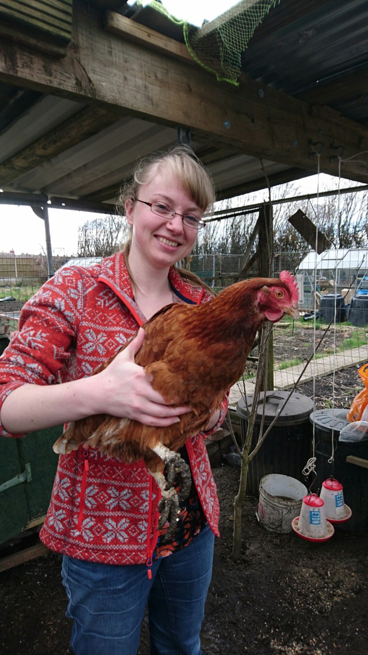 Fiona joined us down there armed with her selection of bulbs to plant in her plot. On her way down to her plot, she swung by the coop and had a quick cuddle with Doris.