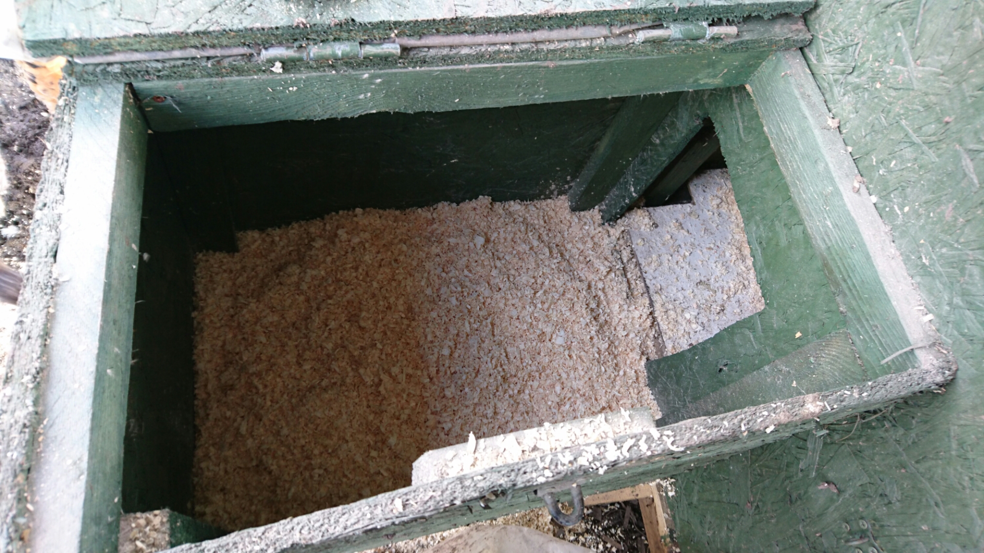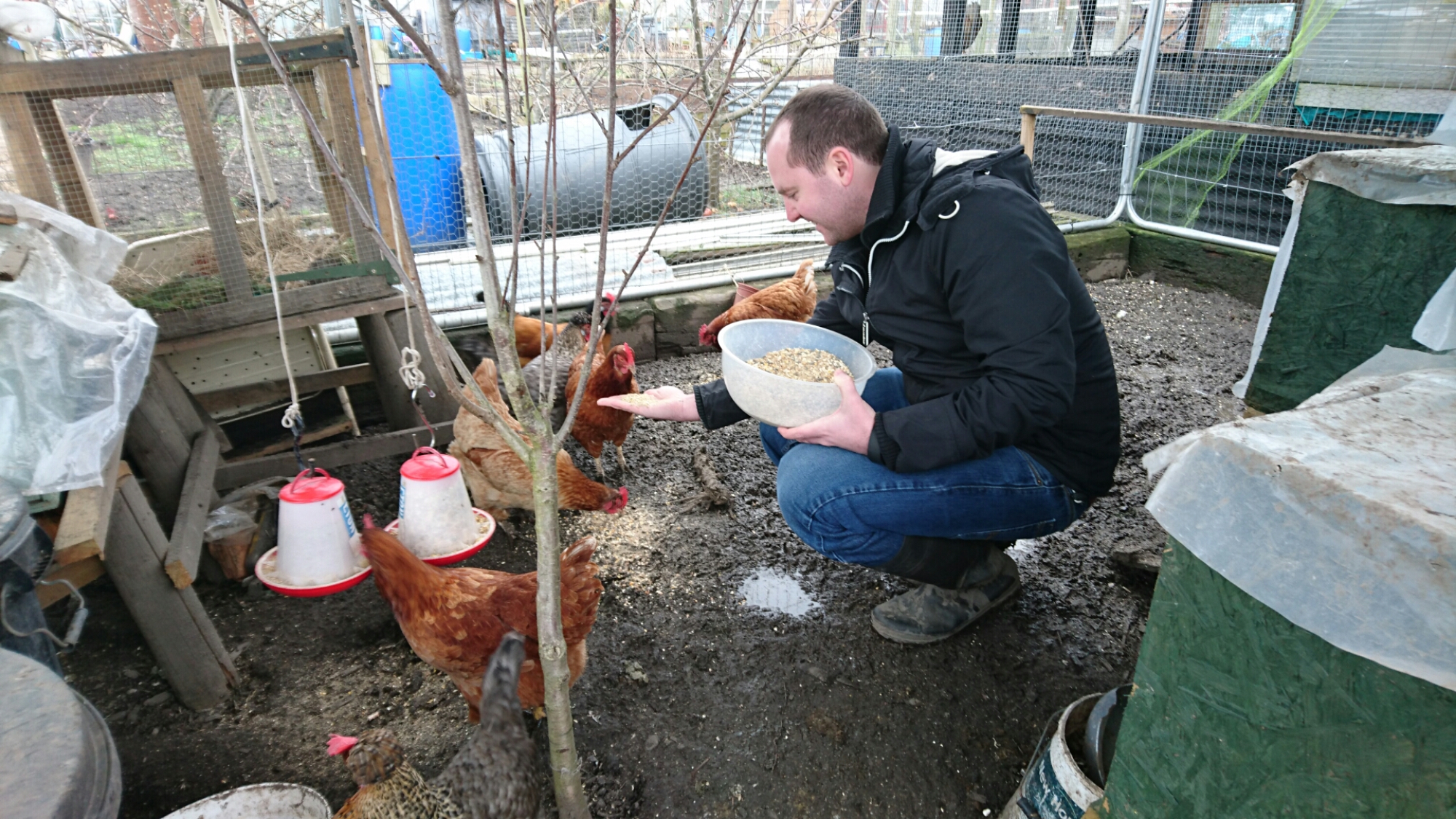 Sadly the ground is still sodden so my other half heroically carried on digging over the plot whilst I sorted out the chickens. They were due for their monthly full clean out and I busied myself with removing old sawdust and repeatedly removing a very nosey Evie from various parts of the nesting box. I also had to work out Geoff’s ingenious building of the nest box so that I could clean the entire thing out properly.