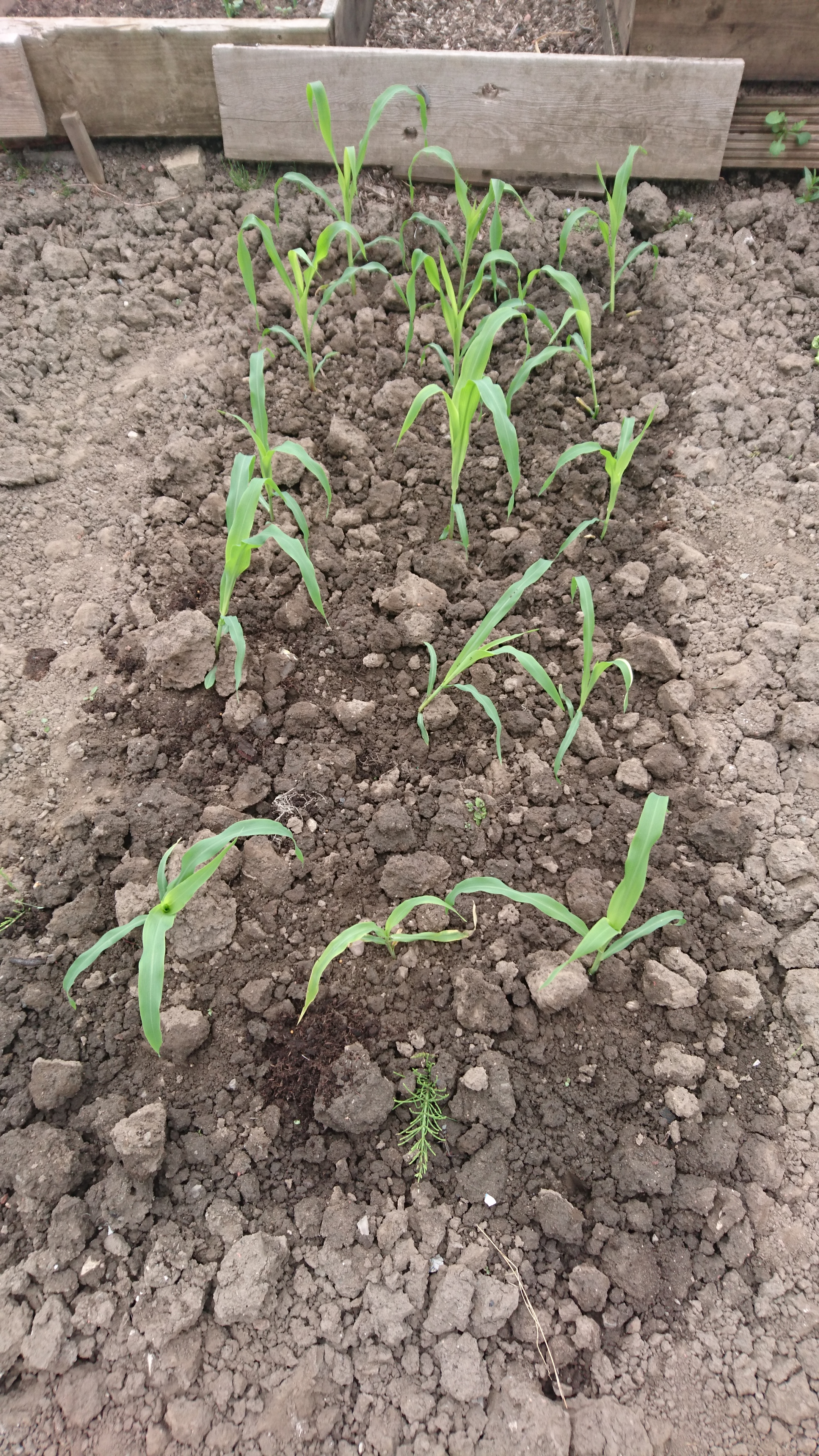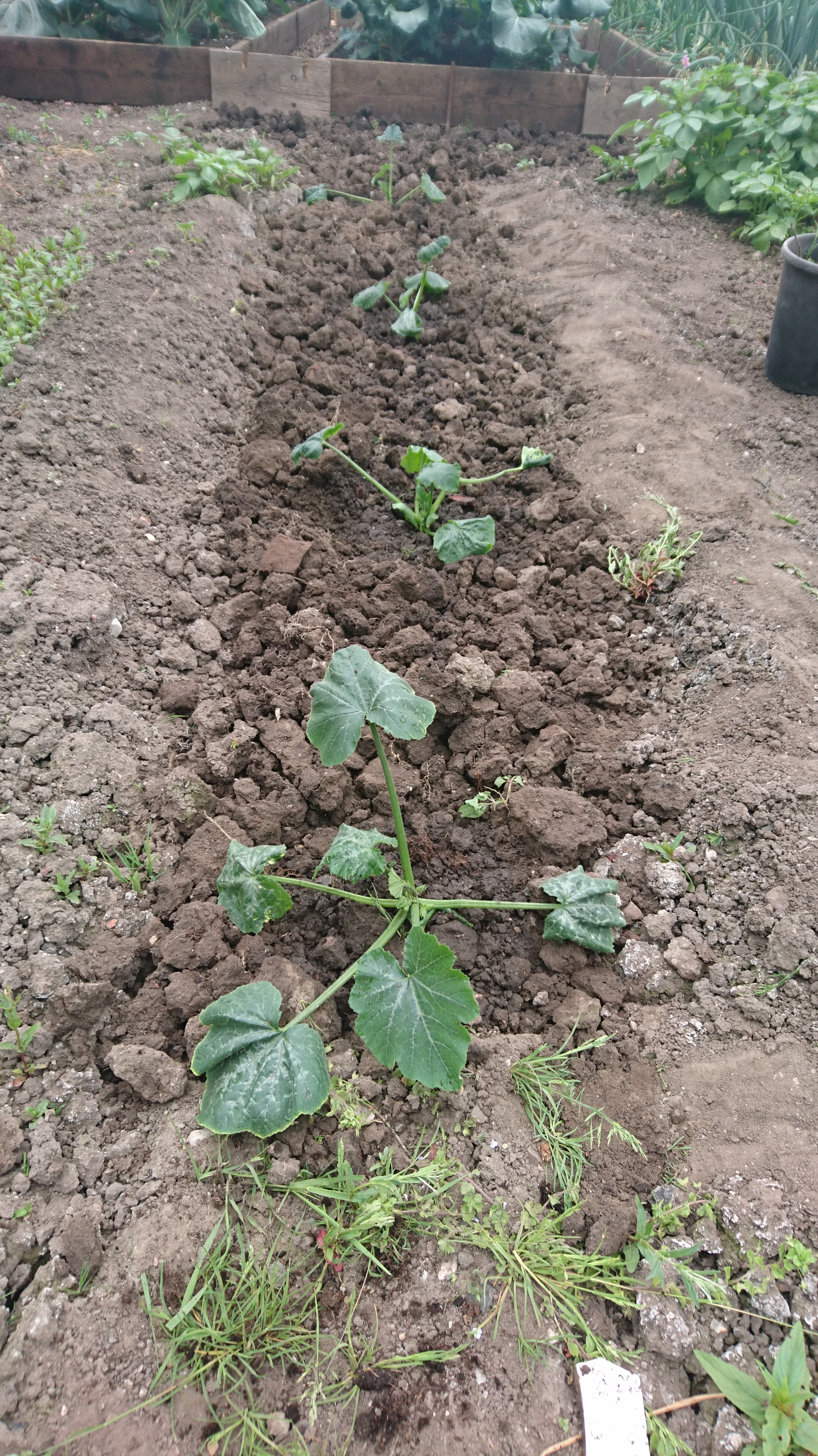 The lack of rain is really getting annoying as all of us are running low on water for plants. The ground is baked solid making it almost impossible to weed or put new plants in. In fitting with the British sense of eternal optimism when all hope is lost, I proceeded to plant out some butternut squash plants and the corn.