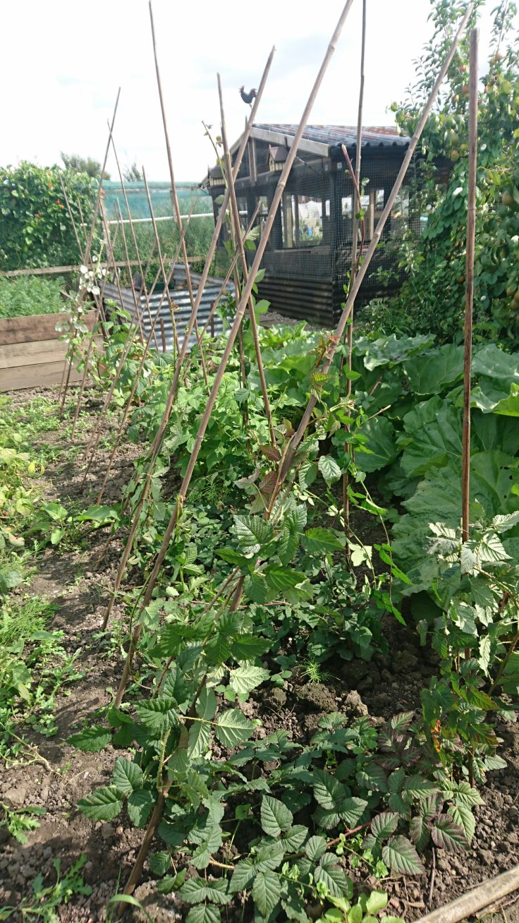 Deciding to call it a day, I had a quick check of the rest of the plot and collected the marrows and added them to to chickens winter stock of greens. I also sorted the fruit bushes as they seem to be determined to tangle themselves together. I am hoping we might get some fruit this year!