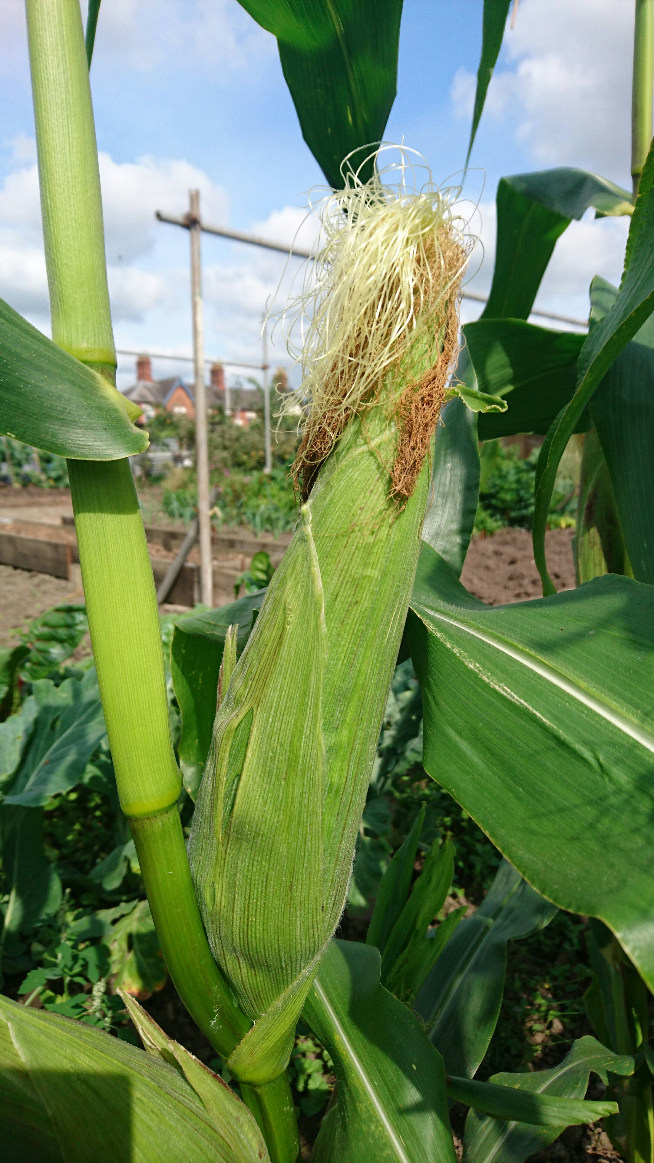 Looking at the corn, I decided to try one. It was delicious and I put the end of it into the coop for the chickens. It lasted less than a minute before the entire thing was eaten!