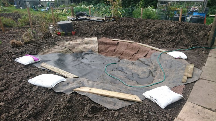 The pond liner is due to arrive on Monday and the guys plan to have it filled by the afternoon. It’s over 2ft deep to accommodate fish and there are careful plans for a beautiful waterfall inlet into the pond.