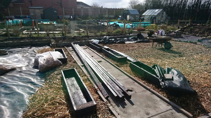The plan going forward is to put up the greenhouse frame on the plot although I have to have help as I am unable to do this single-handedly. With my other half working most weekends isn’t is difficult to catch enough time to do it. The other key thing I plan to do is to put in several raised beds made from old scaffolding planks. Locally these cost around £10-15 per plank and in order to make a 10 x 3ft bed, you only need 2 planks (or 4 if you want a higher level bed). I plan to put these in the areas most prone to flooding to eliminate the boggy nightmare that can cover several large areas on our plot.