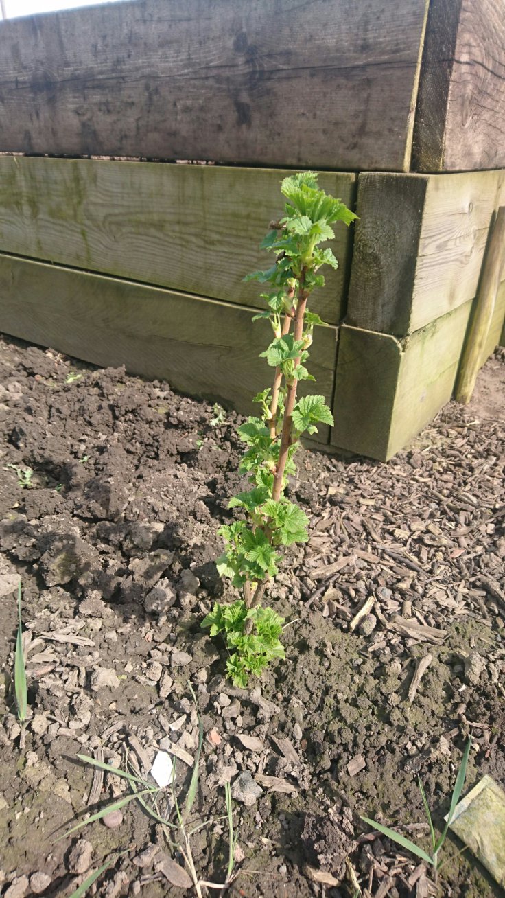 I have many fond memories of eating tayberries. I do NOT have fond memories of wrestling with the tayberry bush this morning. My hands are shredded and I have puncture marks all over my arms and legs. All I can say is that tayberry had better produce a ton of berries if it wants to live much longer! On the plus side the mini blackcurrant bush seems to have survived the winter!