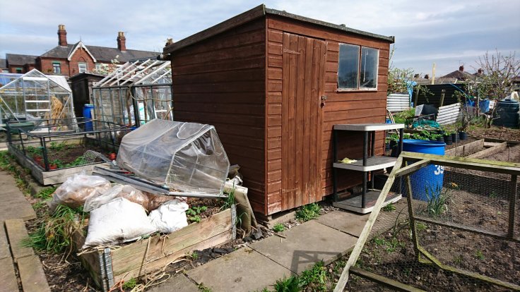 I pottered down the allotment today with a list of things to do including to remove the wooden frame within the greenhouse.