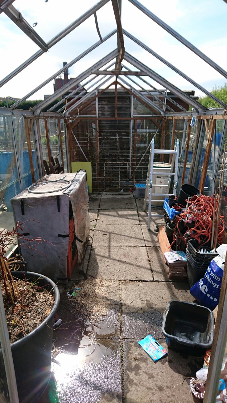 I went off for a bit to clean the remaining glass in the greenhouse which kept me busy for another hour. The glass has come up really well, especially on the side which had the cage on. Mick the Greek has given us a large piece of wood to use to stabilise the side of the greenhouse. So that’s the next job. Then the glass can go back in the roof of the back of the greenhouse. I am still not sure whether it’s worth trying to put in all the panes and buy more.