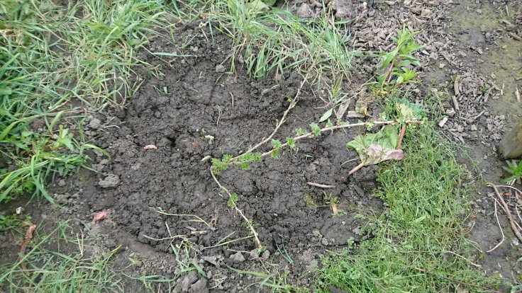 Next, I decided to replant a gooseberry bush which had seeded itself partway down the plot. Fortunately, I have managed to offload a rhubarb plant on someone so I have space for a new gooseberry bush. I am hoping that this one will be a red gooseberry which has a much sweeter taste than the normal white one. Once I manage to dig out two more of the rhubarb plants and give them to Rachael, I will have room to plant the other gooseberry bush which has appeared behind the fruit trees. I suspect this gooseberry is an offshoot from the old gooseberry bushes that used to be there before the chicken coop was built.