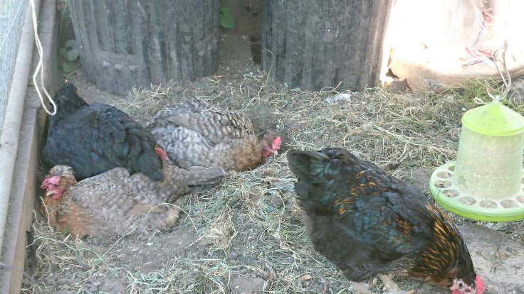 The chickens are enjoying their dust baths in this heat and seemingly unlimited supply of dust and dry soil. They are enjoying sleeping outside rather than in the nest box. I have propped open the lid to try to get some air circulating inside the box. I am not sure it will make any difference but it’s the thought that counts. I spotted a few stray mites on the outside of the coop beneath the perch. I doused the perch and roof with anti-mite spray. It will need to be repeated over the next couple of days to get rid of any survivors.