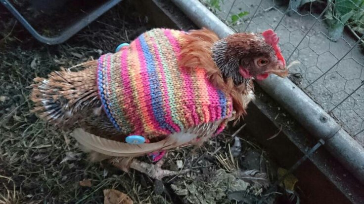 This evening I arrived home from work to find an important parcel had arrived. A few days ago I ordered a chicken jumper for Evie. Her utterly ridiculous insistence on loosing almost all of her feathers have left her extremely vulnerable to the cold. By our reckoning she must be 6 years old and older birds are susceptible to the cold weather.