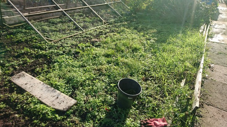 After the girls were sorted, I hoed the top section of the plot and made a start on the overgrown bottom section. The weeds did come out eventually but the rain we had yesterday means the roots come out with a ton of soil attached.