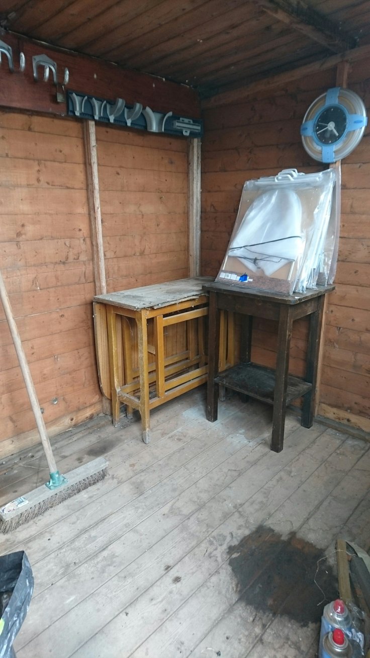 Once it was emptied, we borrowed a broom from Cliff and swept out the floor. The removing of the table, chairs and other paraphernalia revealed not just one evil beast but 5, all of increasing size. The last one was utterly enormous and I confess I screamed and ran away whilst my husband removed it from the shed.
