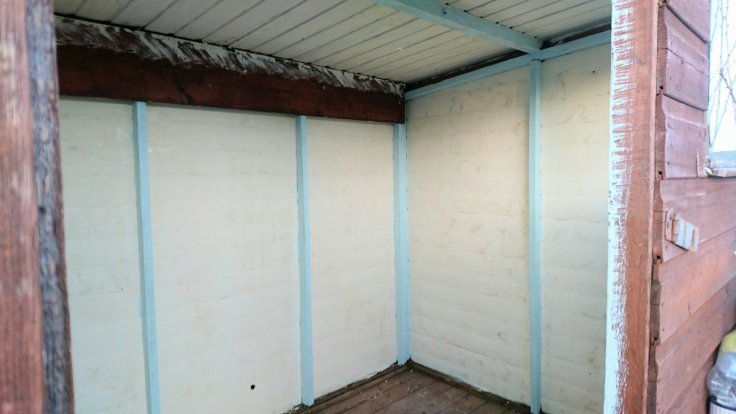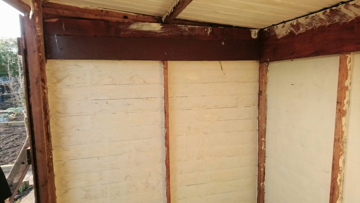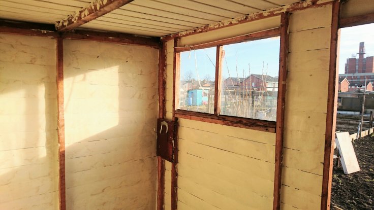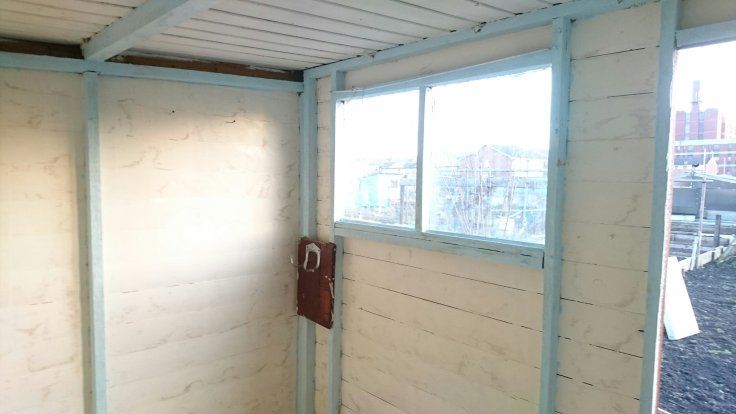 This afternoon my long suffering friend Fiona and I arrived on site laden with buckets of paint, paintbrushes, screwdrivers, hooks, twine, carpet tiles and snacks ready to transform the shed into a cosy hideout.