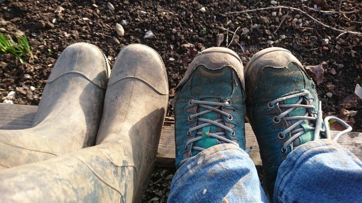 We removed everything from the shed (again!) and borrowed a broom to remove the remaining cobwebs. Part way through, I spotted movement out of the corner of my eye. I immediately grabbed Fiona and both of us vacated the shed rapidly and not without a scream. A blasted, evil 8 legged monster had reappeared and there was no one to remove it… except us. After a hasty consultation, I re-entered the shed armed with the broom. Not without some intrepidation, I approached the hideous monster and prodded it until it got caught on the broom. Yelling to Fiona to stand back I legged it out of the shed, terrified the spider would work out what was happening and climb up the broom to eat me. Luckily, I frantically waved the broom about by Phil’s plot and it got flung off and we were safe again.