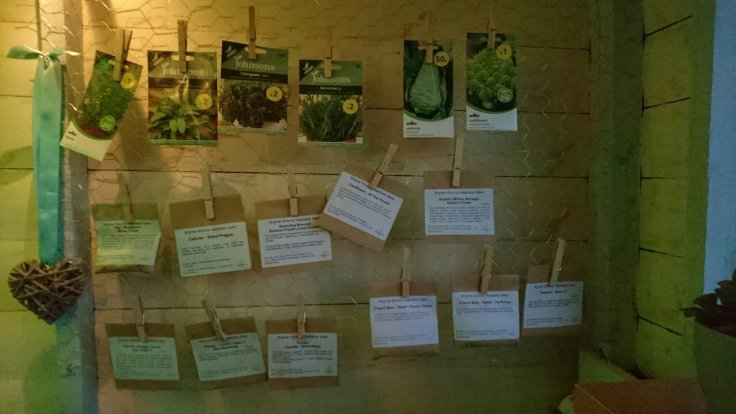 Next I wrestled with putting in a line of screws in the centre beam to hang the new lights from. These are battery powered and are alternating wooden stars and hearts. Irritatingly, the lights are just too short to cover the whole be so I have to pick up a second box tomorrow. Eventually, I wrestled the last screw into place and hung them. It makes a massive difference to the shed and makes it possible for us to cook an evening meal in there after a day of work on the plot.