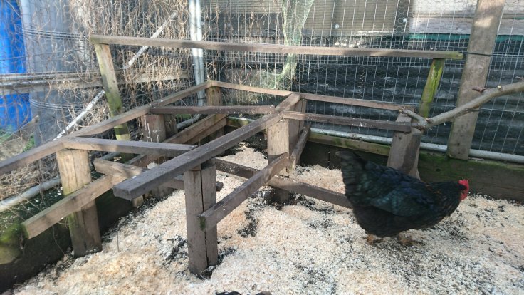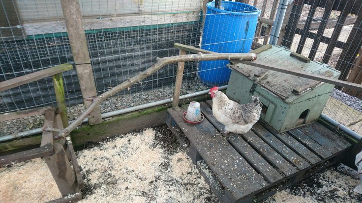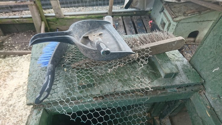As the rain hadn’t put in an appearance yet, it was time to clean out the coop. This is a long job and one I dislike as it takes a couple hours hard to work to ensure everything is thoroughly clean. It’s very difficult to clean the coop in winter due to the site’s water supply being off and the difficulties drying boards in the rain. On the plus side, my new bucket made the job easier. I removed everything from the nest box including both perches, bottom boards and saw dust. Previously o have struggled fully brush out the nest box but my new soft brush made a real difference. My efforts were almost constantly inspected by a judgy Evie and Fizz.