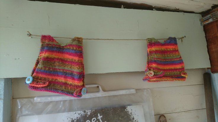 I swung by the clubhouse briefly on my arrival, waved to the gang before opening up the shed. As I was opening the shed, I caught Cliff and gave him the purple passion flower I got him the day before yesterday. He was very pleased – I made sure I got his favourite type. I had brought down the chicken jumpers as it seemed silly to keep them at home and I set about making a place to put them. I tried hanging them and decided it worked quite well. Plus, there is room for another jumper!
