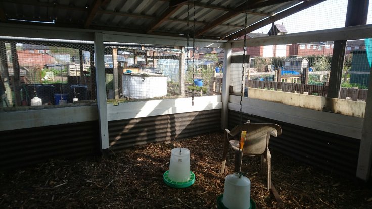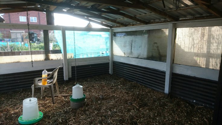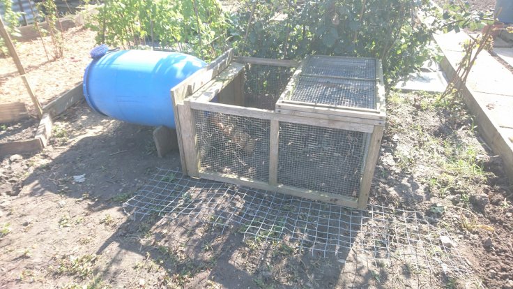 This is day three of her being fully broody and now was the time to separate her from the others. To separate them may seem unfair but it’s best both for Emily who needs privacy and quiet, and the rest of the flock who want to lay their eggs in the nest box. And, for the owners, who would like to collect the eggs without risking losing their fingers! Cliff very kindly lent us one of his broody enclosures. Between us, we hauled it around to our plot and we started to prepare it.