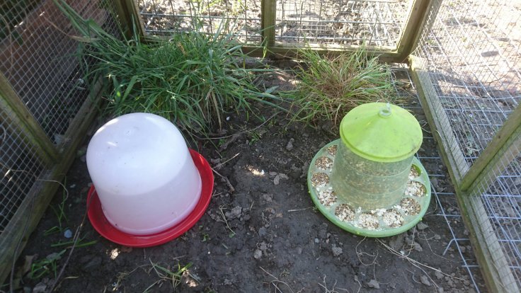 A broody box needs to be big enough for the chicken to be comfortable inside, have an outdoor area with food and water with enough space for the broody to stretch her legs when she takes a break from sitting. I cleaned the nest box out using cleaning fluid and left it to dry whilst I cleaned out and filled a feeder. Cliff lent us a water container so that she has a plentiful supply of clean water.