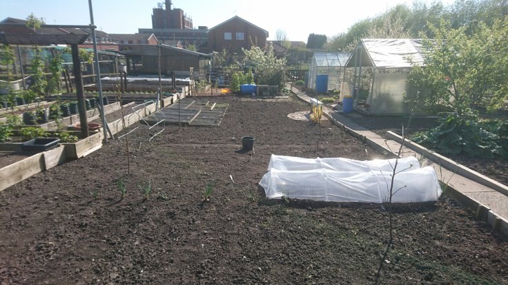 This morning I walked down to the allotment via the corner shop to pick up some biscuits for the clubhouse. The sun was out again but the breeze took the temperature down enough to remind you it is still early April.