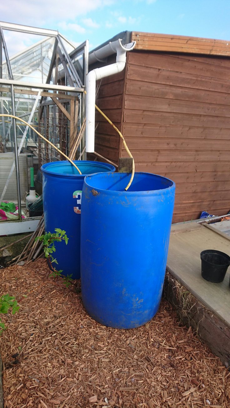 Cliff then volunteered to help me clear the water butt by the coop which I had been using as a dumping ground for pruned branches. We pushed the butt over and drained the rain water out of it. It stank to high heaven! Between us, we moved all the sticks and cleared out the rotting material at the bottom of the butt. It was a battle as the decomposed material was tightly compacted and it took a while to remove it all. I put the smelly material (which will be perfect compost next year) into the black composter. I screwed on the lid and went for a drink at the clubhouse to get away from the stench! Cliff meanwhile had cleaned it out and put it by the other water butt behind the shed.