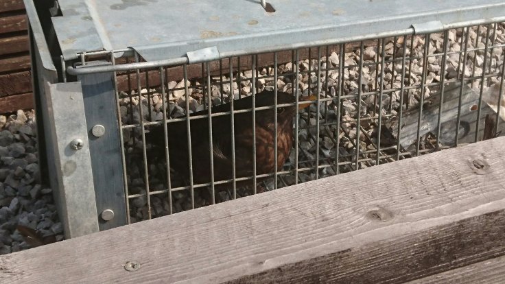 As I was walking over to the clubhouse I spotted a bird caught in one of Cliff’s traps. The rat traps often catch different wildlife who are tempted in by the tasty treats Cliff puts in. Today Mrs Blackbird had got herself stuck. Rachael and I managed to open the trap but it took several minutes to persuade the bird that she could go out. Finally, with a flutter of wings, she flew off.