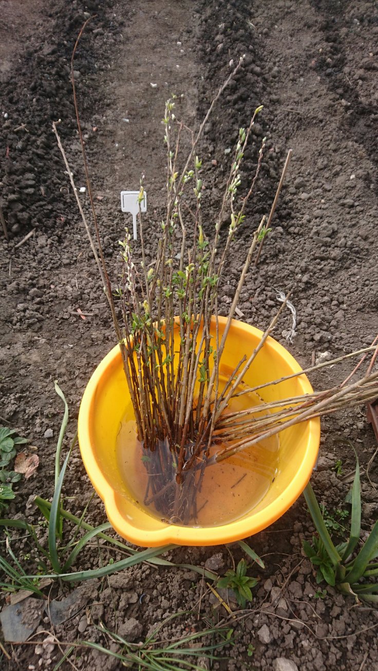 My next job was to plant out some more seeds but by now my fingers were turning blue. Instead, I chose to do a thorough watering of all pots and plants. It took several trips to the water butts but I am pleased with how well everything is growing. My climbing hydrangeas looked rather frost bitten a few days ago, have perked up under their grow tunnel and I think they should survive.