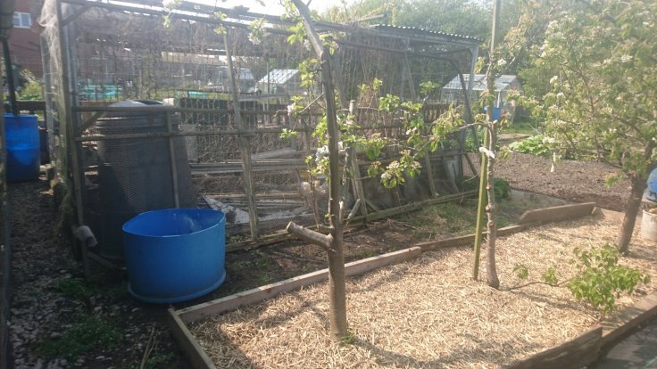 As we walked back to the shed, I noticed the greenhouse shield had been moved. It means I can finally hoe the entire plot without having to try to lug it across the plot in order to remove weeds. Temporarily it is by the chicken coop until we can work out what to do with it.