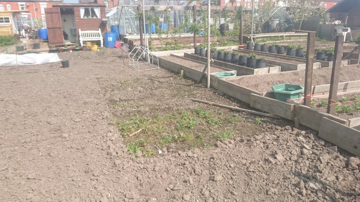 Tomorrow is a busy day as the greenhouse should have a full set of glass, be all tidied and ready to go and the last section of the plot needs to be hoed.