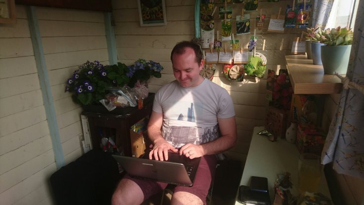 By now the heat was intense, and Cliff and Mick called it a day. Glass will go in tomorrow and I can set up my greenhouse properly! After they left, my husband came down and did some work on his laptop in the shed whilst I got busy sweeping out the greenhouse and new patio.