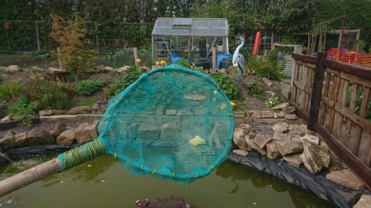 As I was working Rachael dropped by to ask where Cliff was. He’d popped off site for a bit but was due back soon. Rachael showed me the net she had made for the pond – it was great! Made from bits she found on site, it works just as well as a store bought one. I cleared off some rubbish on the surface of the pond, finding the net effective and the long handle meant I could reach into the middle of the pond to clear it without risking falling in!