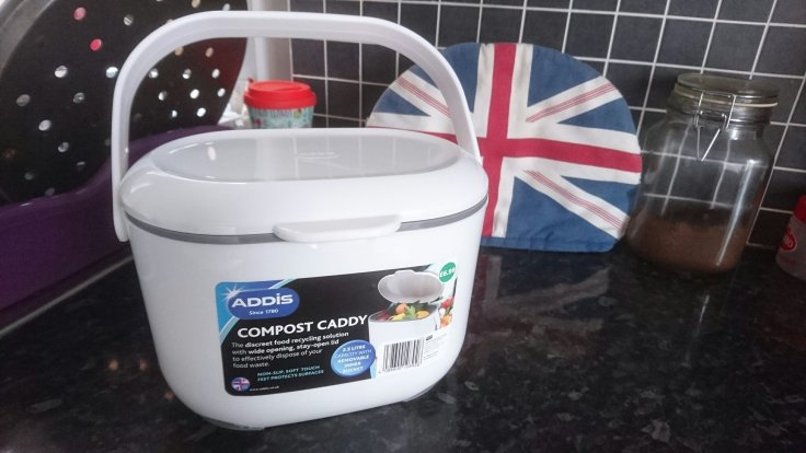 I took down my new kitchen compost bin with food scraps for the worms. Trust Aldi to have exactly what I need when I need it! I was struggling to find a suitable box for kitchen scraps which would keep the scraps reasonably fresh and sealed.