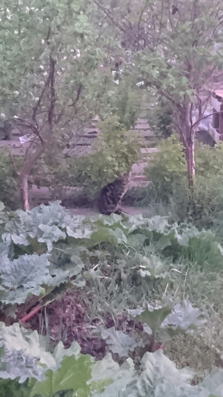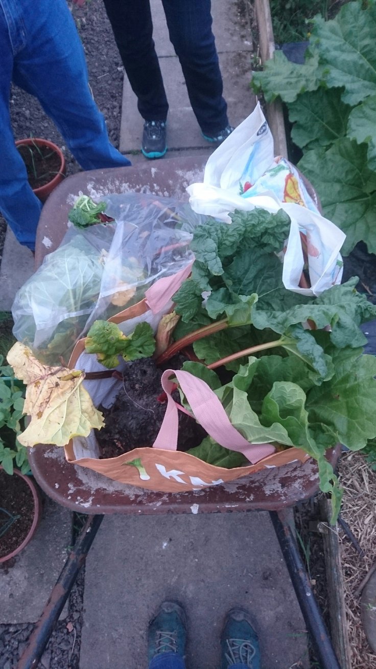 So tomorrow I need to hoe the plot as the bind weed seems to be growing several feet every time I turn my back. I also plan to plant a few more seeds and use the rhubarb leaves from tonight to put around the lettuces to protect them from the slugs.