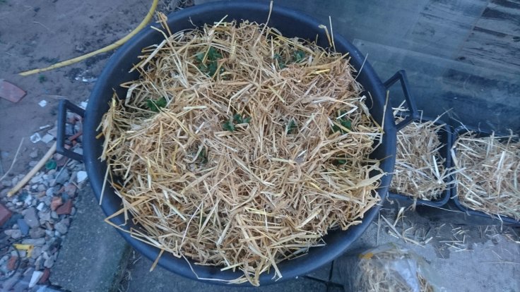We shut the shed and went to water the potatoes. The largest pot looked different somehow. Upon closer inspection, I realised it was because the potatoes are coming through the straw! I watered the potatoes and added a new stash of straw to the pot for the potatoes to grow through. At this rate, I will run out of straw!
