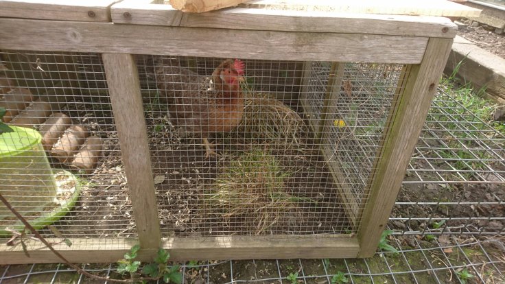 The other girls were all lined up by the door waiting to be fed, just as if I had never fed them. I threw out their treats and changed their water. Whilst I was doing this, I also topped up Emily’s food and got her some fresh water. Cliff had put one of his chickens in the other broody box on our plot. Clearly she was unhappy about being moved and spent a good hour shouting at the world and everyone in it. Hopefully she will settle down!