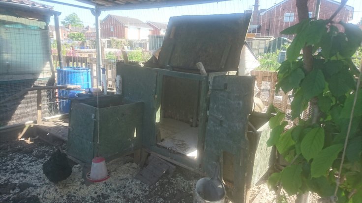 Yesterday morning, I walked down to the allotment ready to clean out the coop. It should be done once a month to keep the mites at bay. Unfortunately, we didn’t have enough sawdust to sort out the nest box until yesterday evening, so the clean out was a bit late.