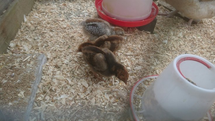 They are so big now! Emily looked rather frazzled trying to keep those three chicks in order! Hilariously, the two wyandottes favourite place to sit is on Emily’s back. She wasn’t impressed and quickly got them off.